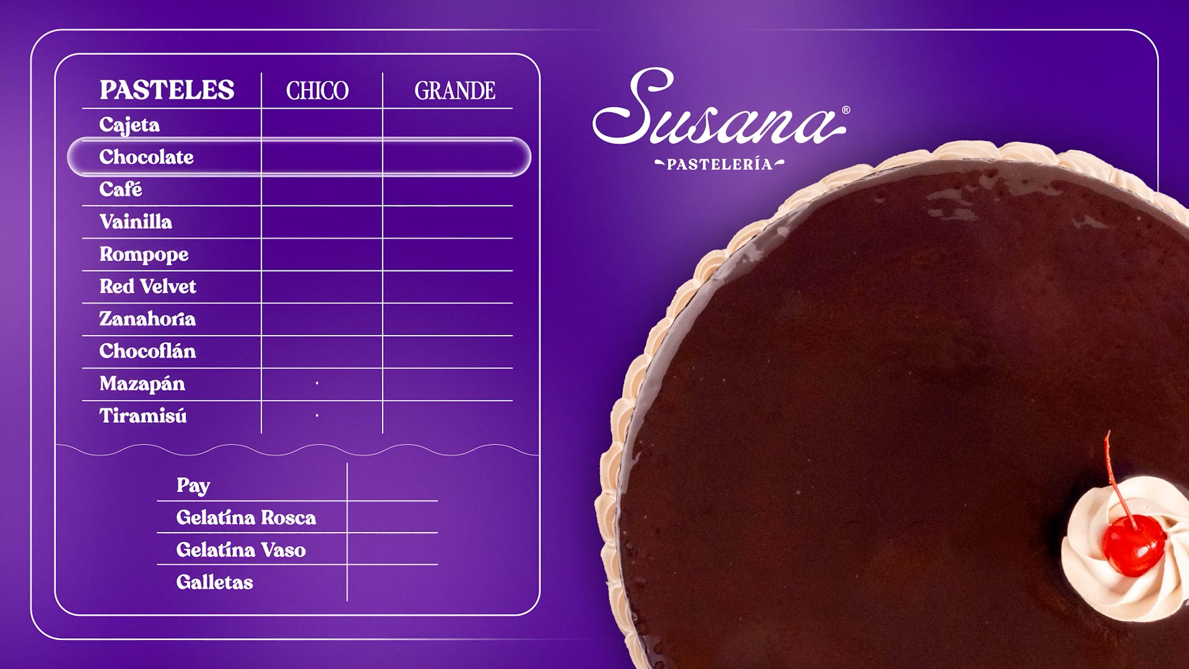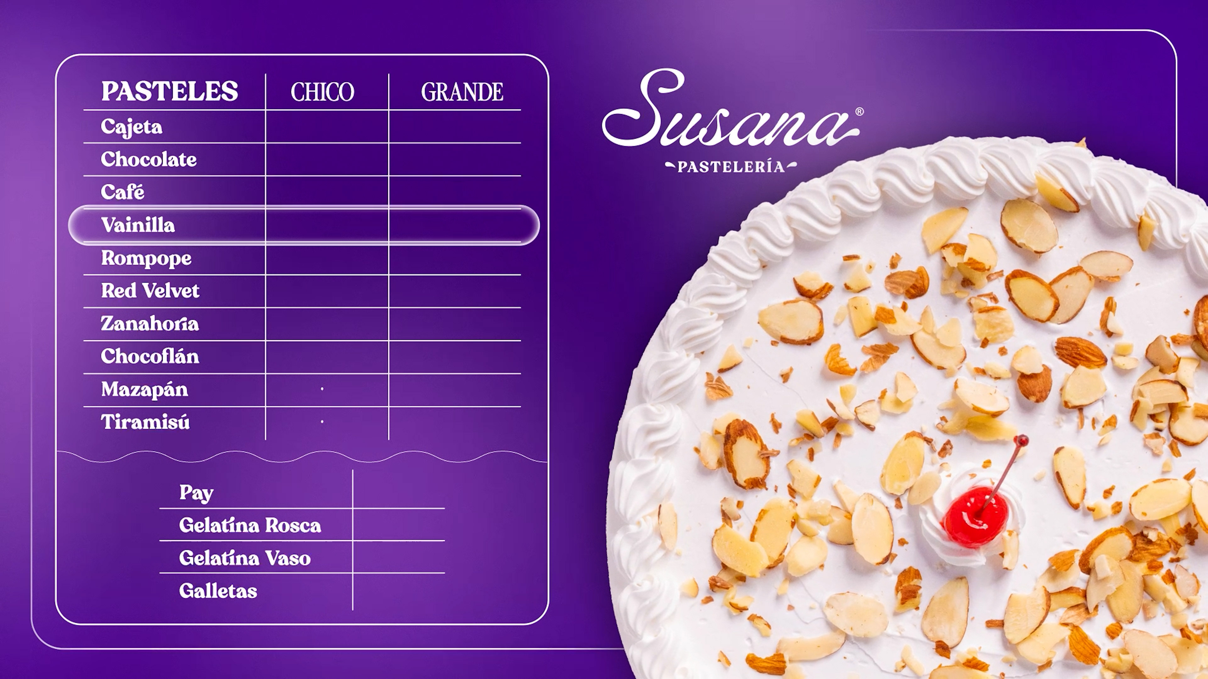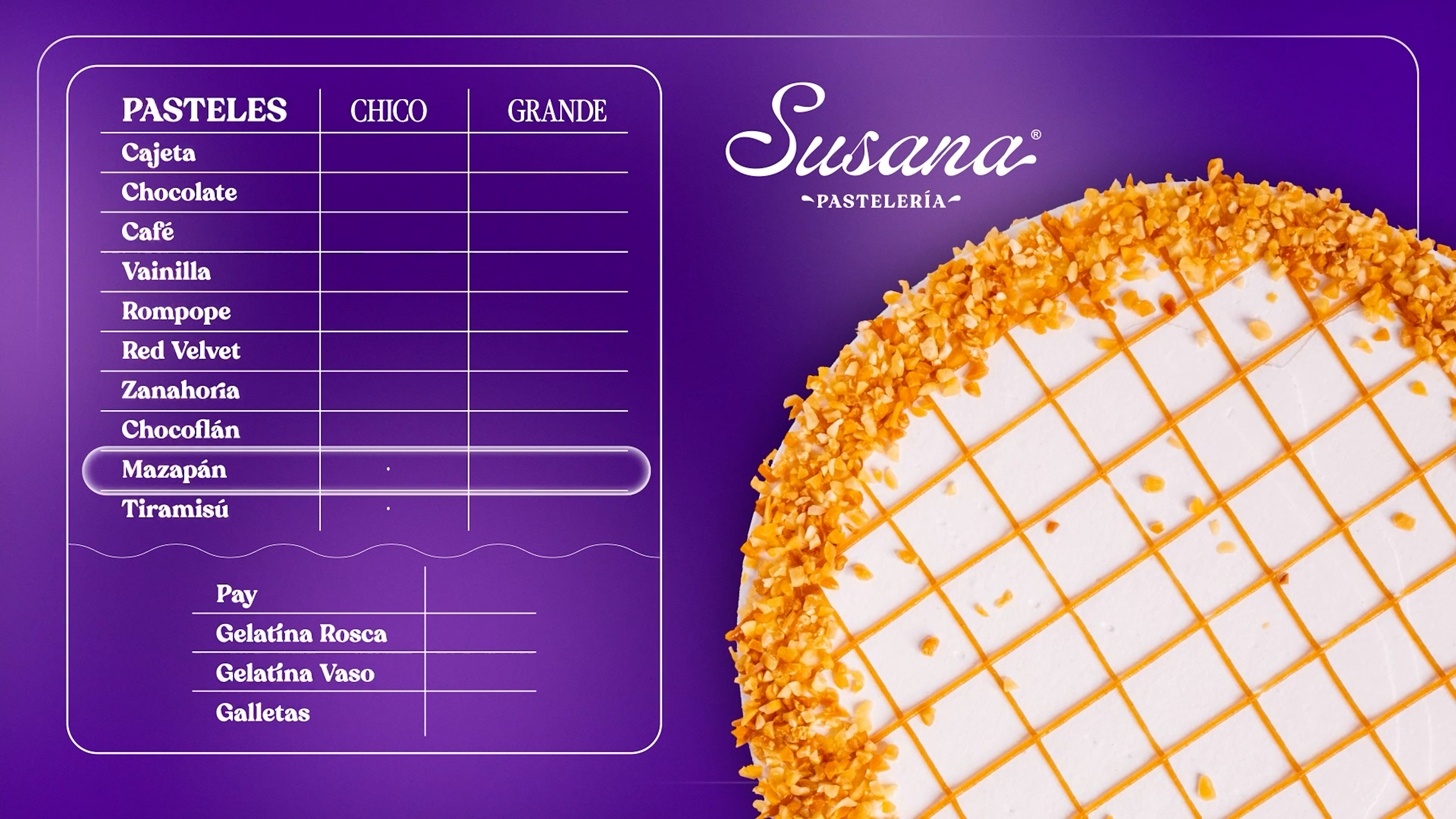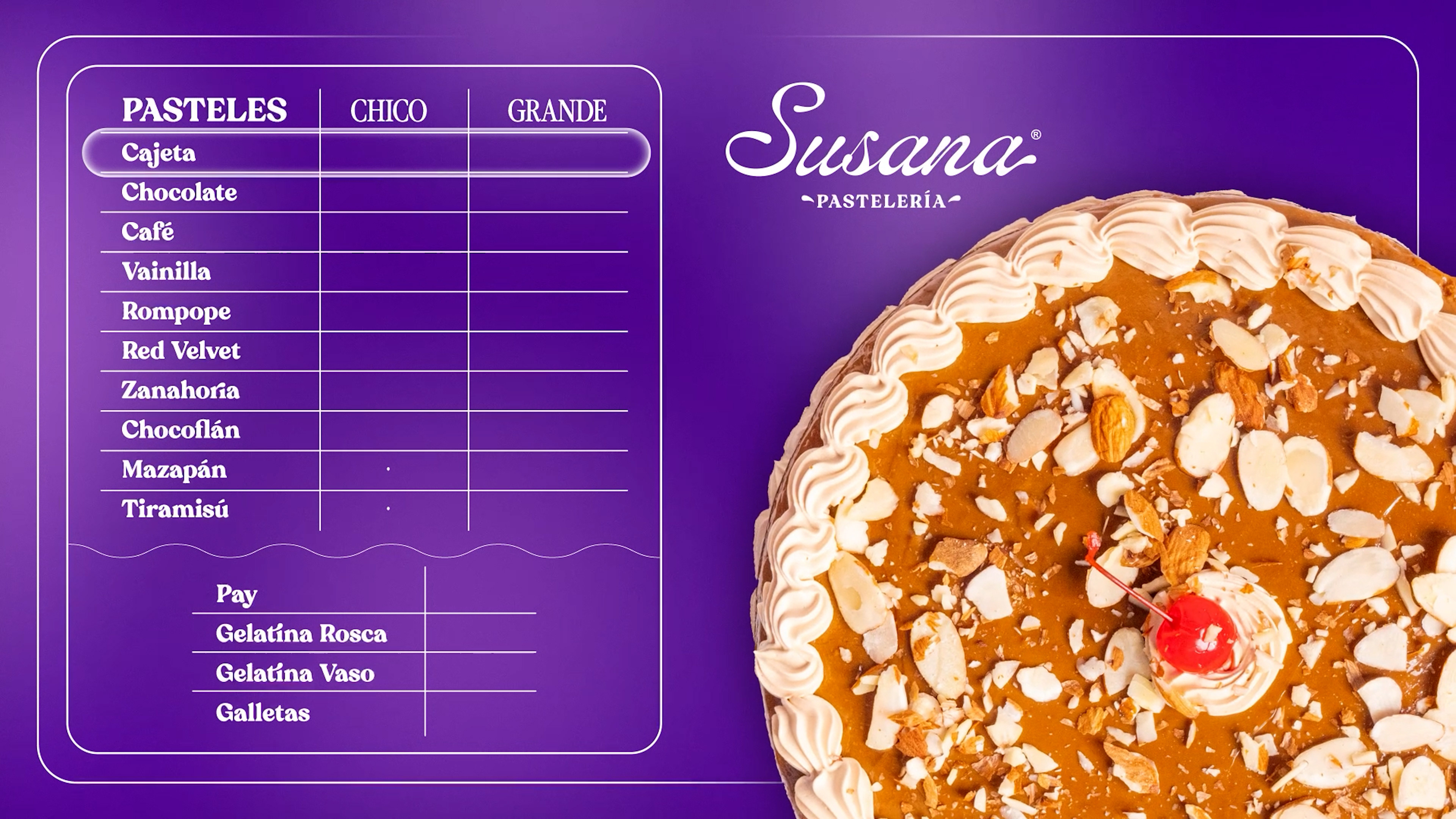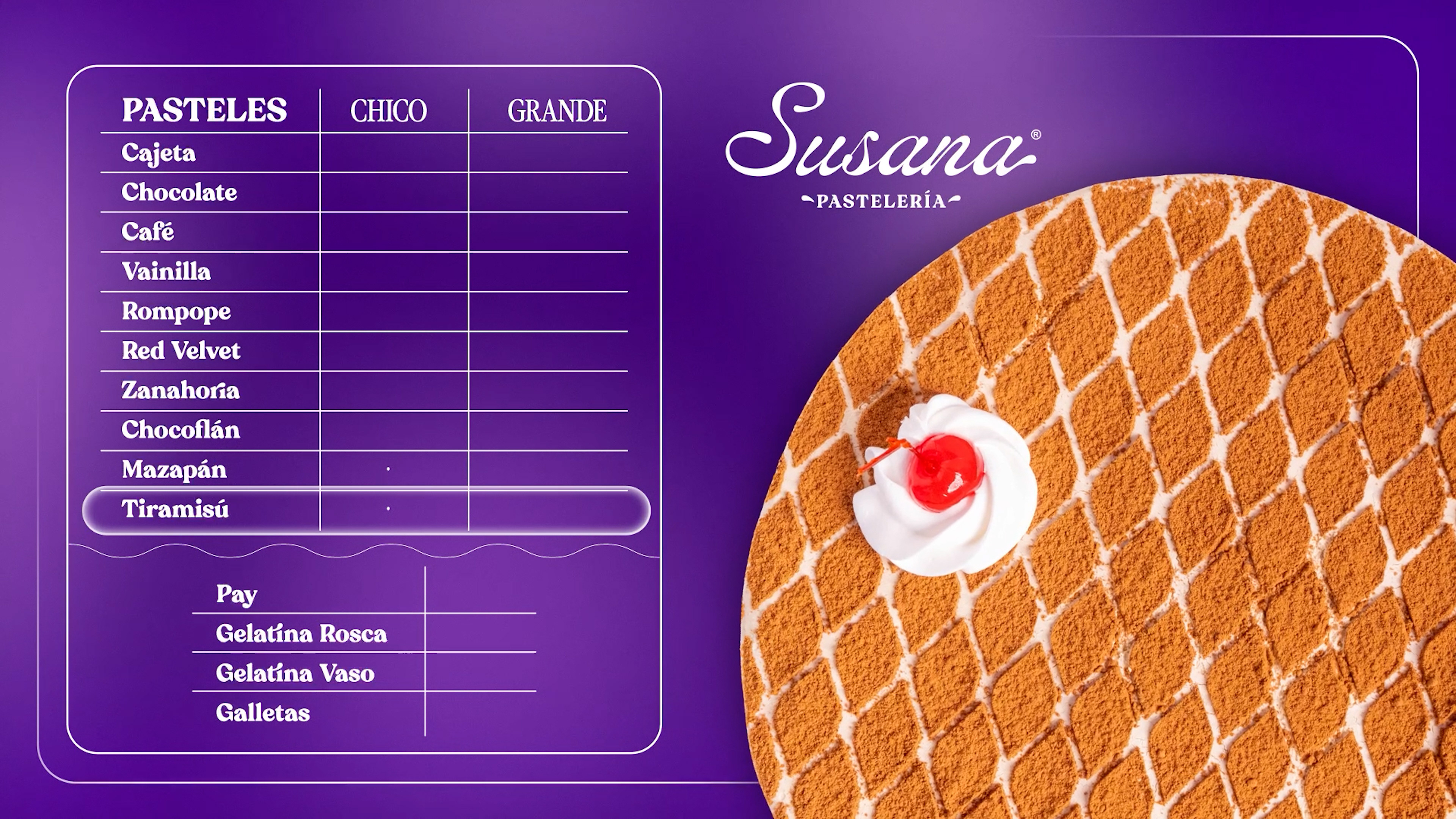 Producción de Menú Digital Animado para Susana Pastelería.