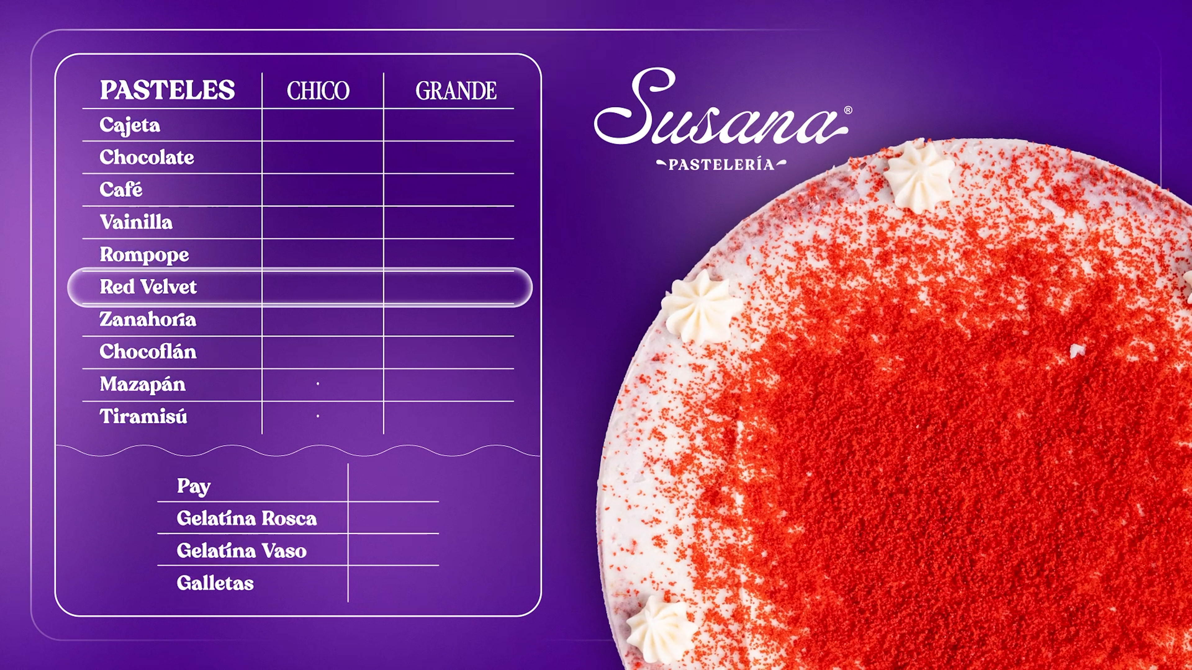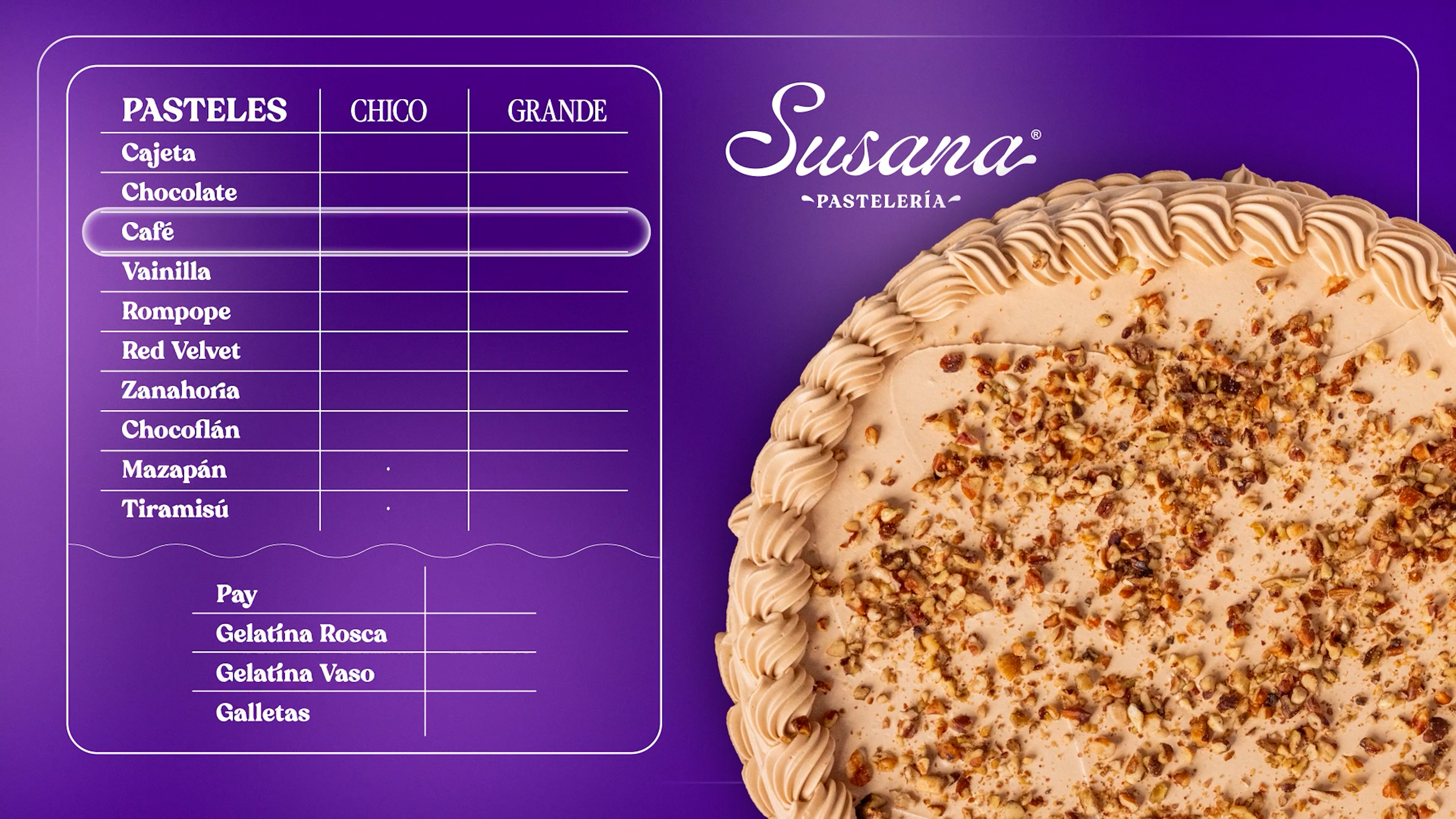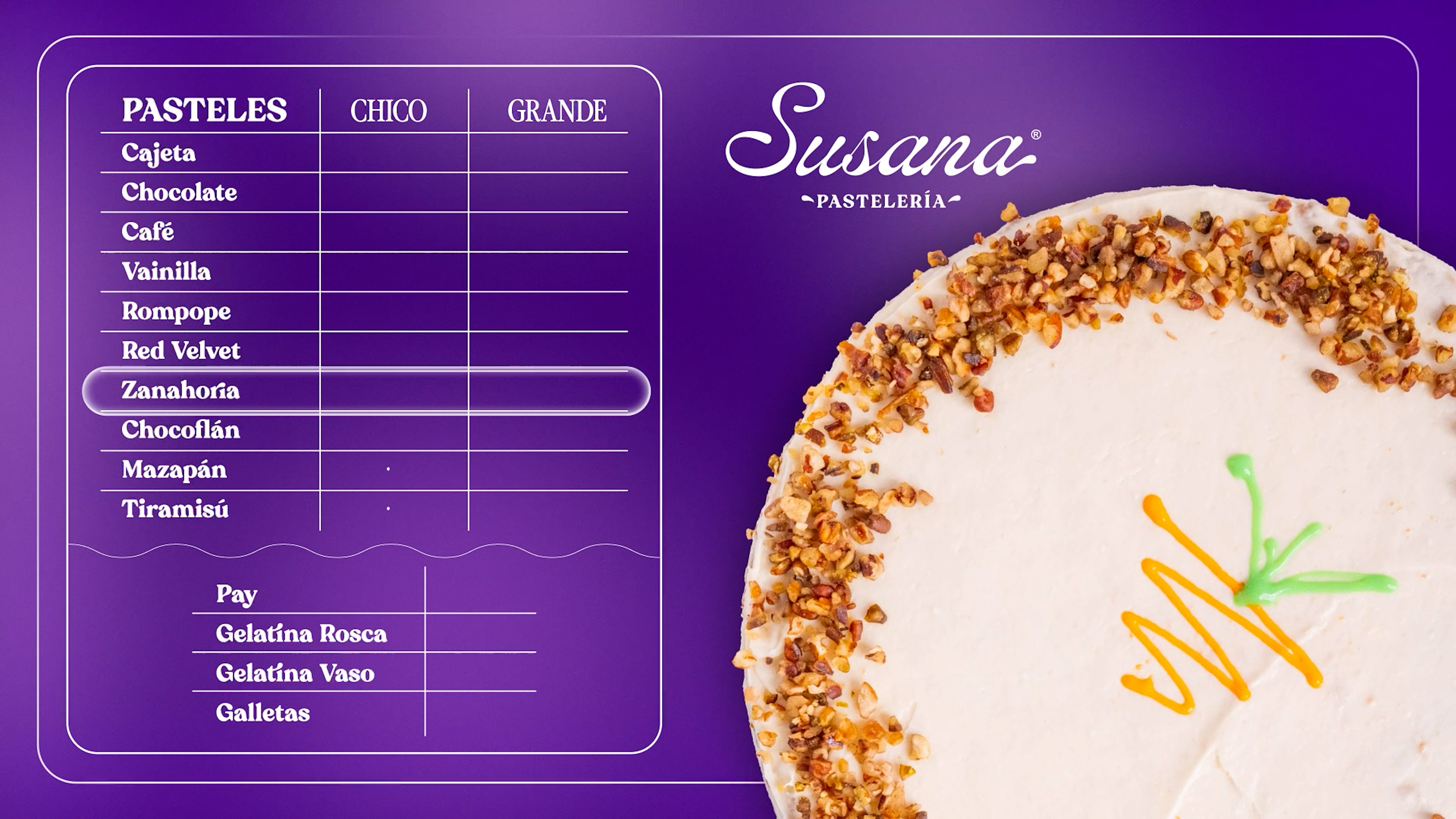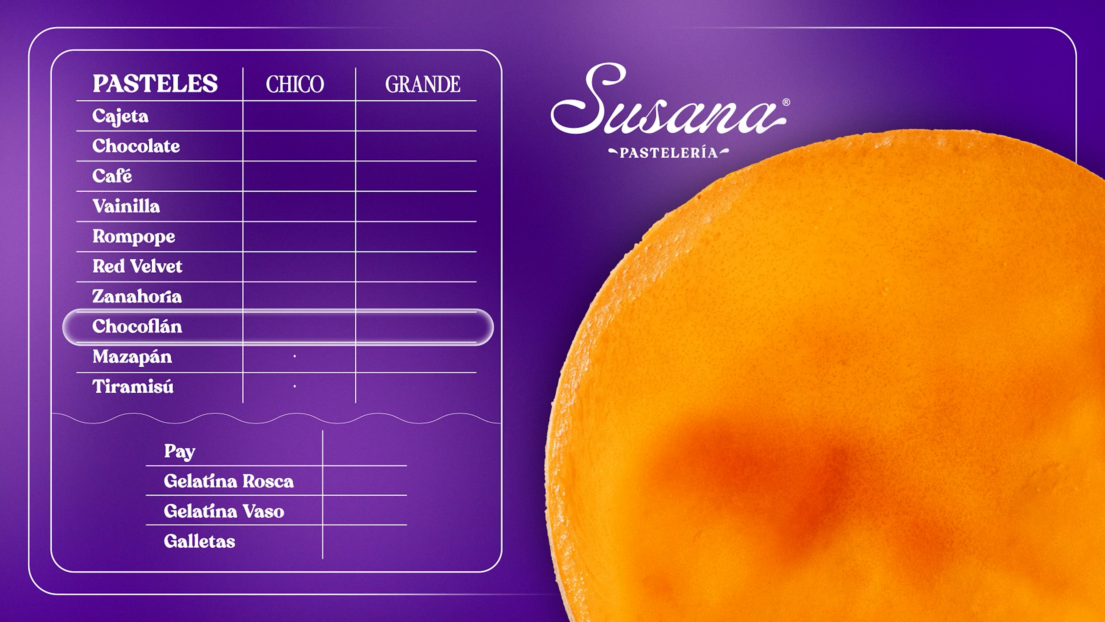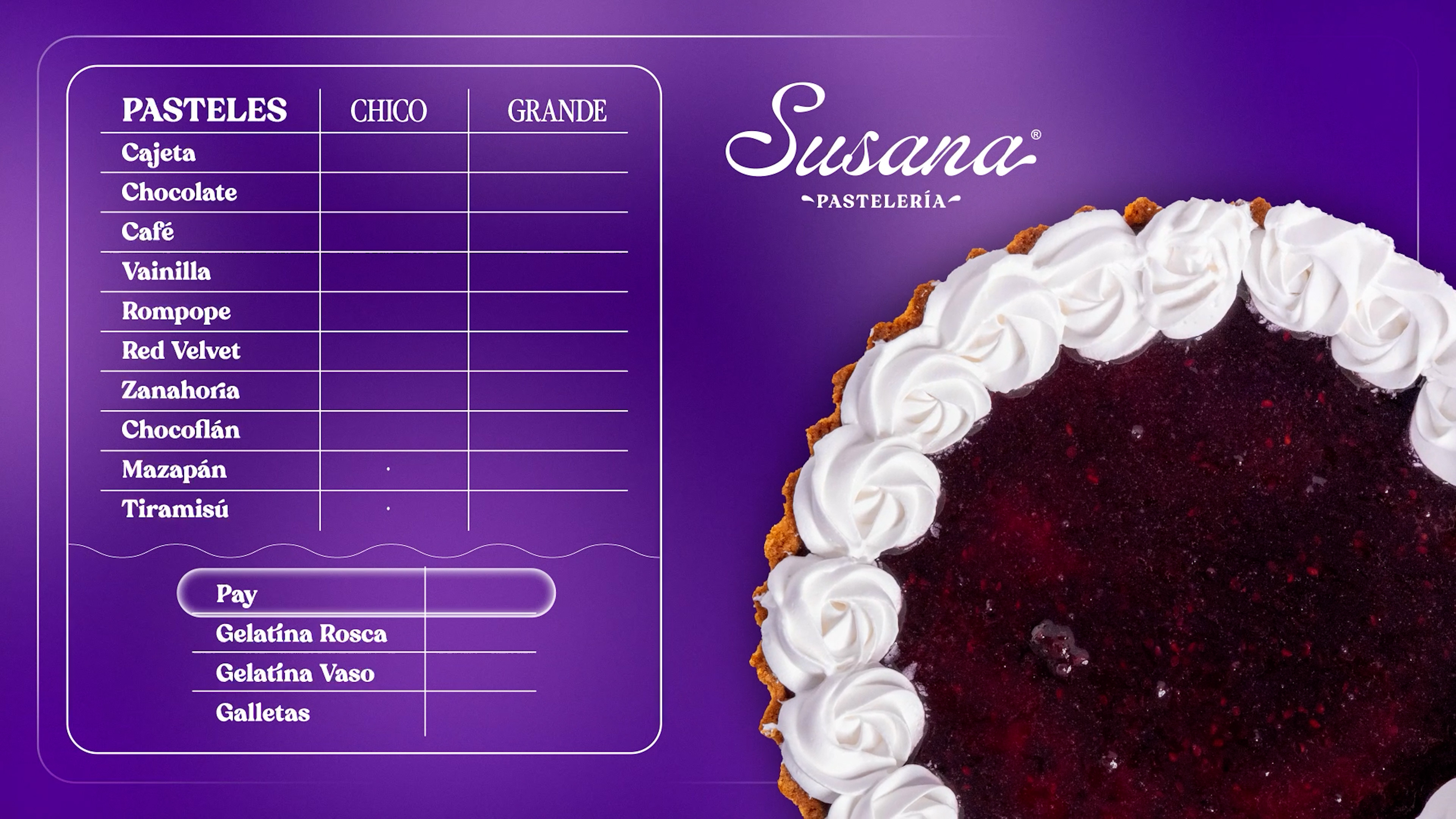 Producción de Menú Digital Animado para Susana Pastelería.